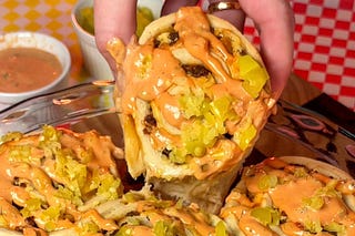 A savory cinnamon-roll-style twist on the flavors of an animal style burger.